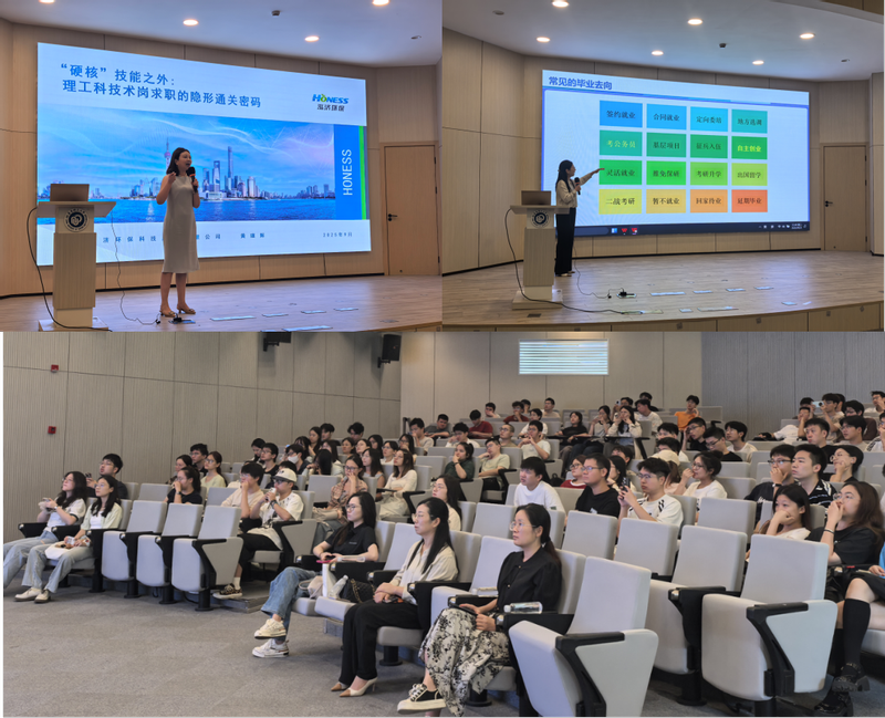 学期伊始,学院召开了2026届毕业生就业指导动员会,邀请上海泓济环保科技股份有限公司人力资源总监黄瑾辉女士作专题分享。黄瑾辉以“硬核技能之外:理工科技术岗求职的隐形通关密码”为题,系统讲解了环保行业就业趋势、简历撰写技巧、面试准备要点等内容,助力毕业生提升求职软实力。学院党委副书记曹娜详细分析了往届毕业生的就业情况,鼓励同学们树立信心、主动出击,把握秋招黄金期。