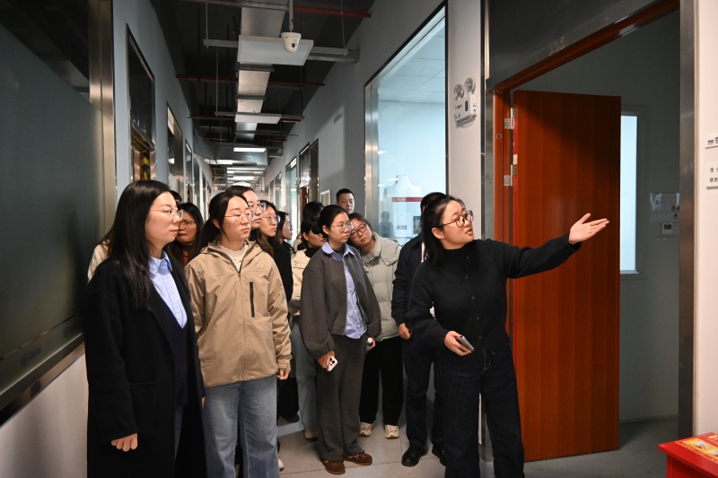 座谈会后,检测部部长周霄林陪同师生参观了企业办公室区域及实验中心。她耐心向师生介绍了公司的各个专项实验室,同学们近距离接触前沿科技设备,沉浸式体验创新研发场景,上了一堂生动的“实践课”。