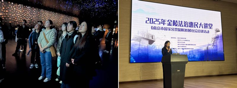 时值纪念中国人民抗日战争暨世界反法西斯战争胜利80周年,工作室组织学校辅导员一行在国家公祭日前夕赴侵华日军南京大屠杀遇难同胞纪念馆开展红色研学并参加了2025年金陵法治惠民大讲堂。通过瞻仰历史文物、聆听英雄事迹、重温民族记忆,大家纷纷表示将把研学收获融入学生思想引领、社会实践、主题班会等育人环节,用鲜活的历史故事引导青年学子传承爱国精神,勇担中华民族伟大复兴重任。