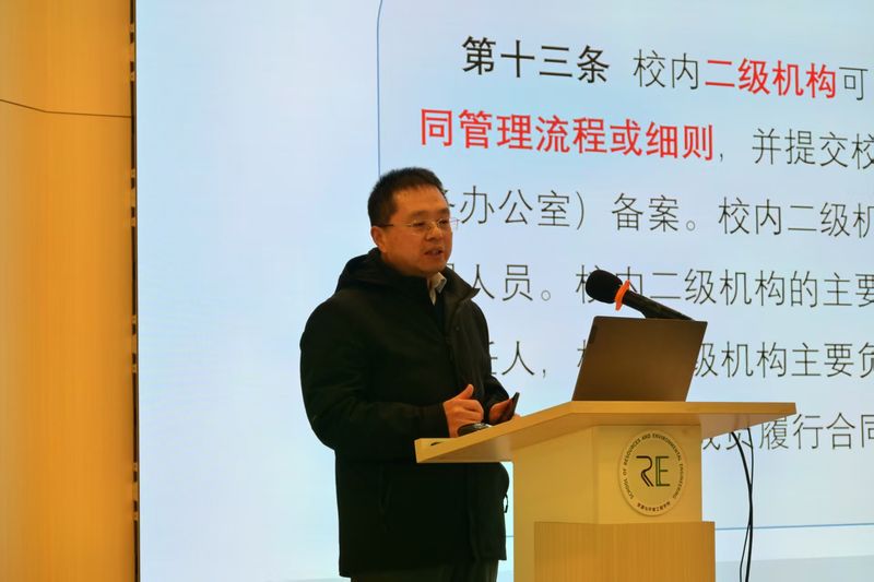 学院还邀请了校长办公室副主任兼法务办主任董溯战,为学院全体教职工就《合同管理办法》修订情况进行了解读,并重点介绍了合同签订的具体流程、关键节点,详细讲解了合同签订的注意事项等内容,切实为老师们答疑解惑、明晰规范。