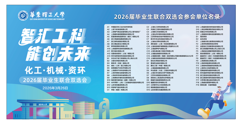 3月26日下午,华东理工大学化工学院、机械与动力工程学院和资源与环境工程学院三院携手,在先进材料大楼一楼大厅举办“智汇工科 能创未来” 2026 届毕业生春季双选会,为应届毕业生搭建起优质的就业桥梁。