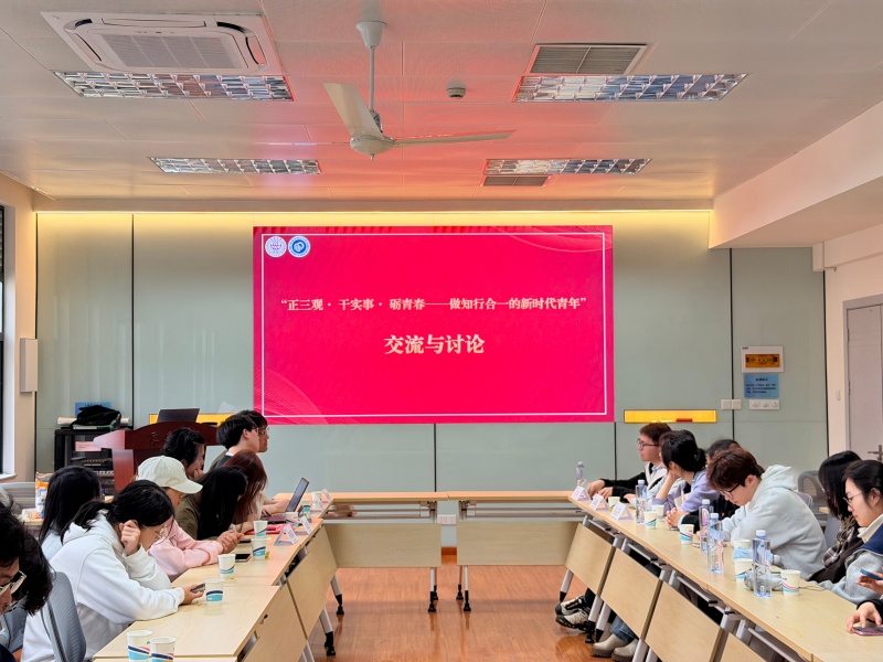 为深入学习贯彻党的二十大及二十届历次全会精神,引导青年党员筑牢思想根基,锤炼务实作风,勇担青春使命,并着力打造校际青年党员互学互鉴、交流共进、协同成长的平台。4月14日下午,资环学院碳中和师生党支部与东华大学纺织学院研究生第六党支部联合开展“正三观·干实事·砺青春——做知行合一的新时代青年”联合主题党日活动,碳中和师生党支部副书记袁聪,东华大学纺织学院研究生第六党支部书记保金坤、副书记戴鑫鑫及两支部党员参加了活动。活动由保金坤主持。