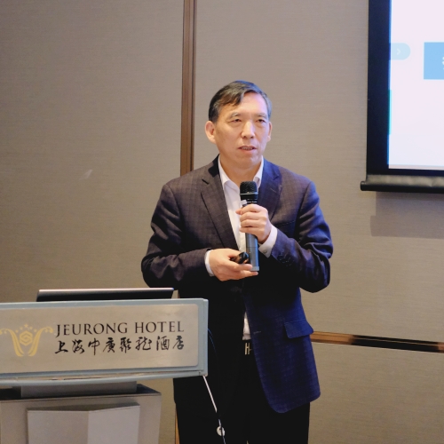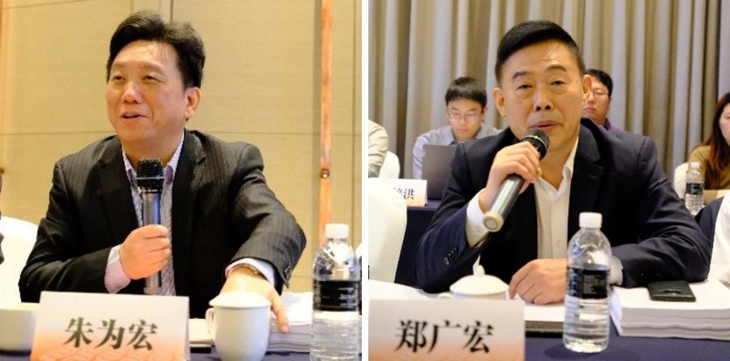 Figure description: Academician Zhu Weihong (left) of the Chinese Academy of Sciences and Zheng Guanghong (right), a Level-II Inspector of the Science and Technology Commission of Shanghai Municipality, are making speeches
